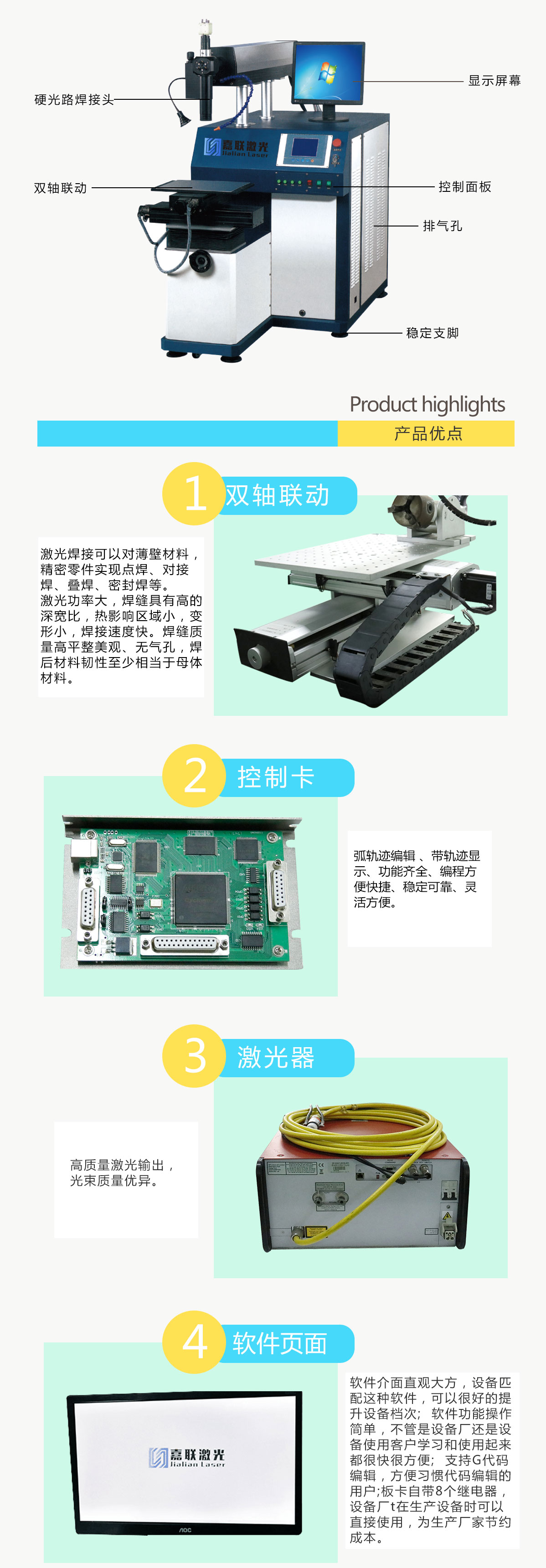 2、眼鏡行業(yè):不銹鋼、鈦合金等材質(zhì)的眼鏡扣位、外框等位置的精密焊接;5、其適應(yīng)是強(qiáng),可靠性高,產(chǎn)生缺陷少。