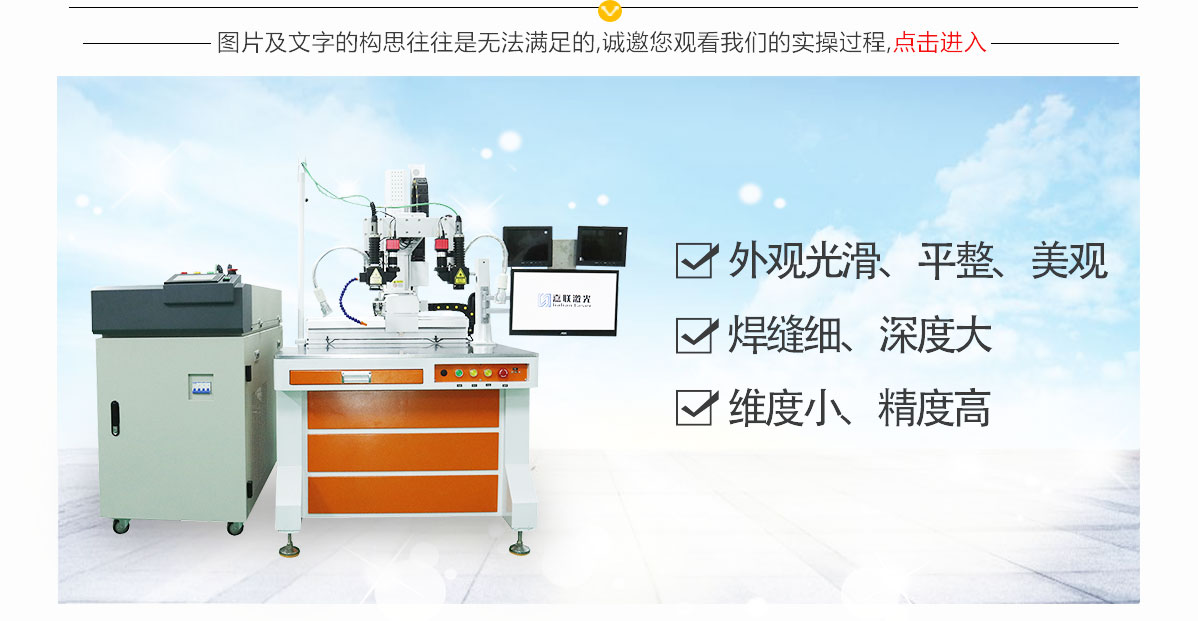 雙頭聯(lián)動(dòng)激光接機(jī)將光分成兩路,可同時(shí)焊接兩個(gè)很近的焊點(diǎn),可大大提升焊接效率,并能保焊接的準(zhǔn)確度。雙頭激光焊接可以對(duì)薄壁材料,精密零件實(shí)現(xiàn)點(diǎn)焊,對(duì)接焊,疊焊,密封焊等;激光功率大,焊縫具有高的深度比,熱影響區(qū)域小,變形小,無氣孔,焊后材料韌性至少相當(dāng)于母體材料;人體化設(shè)計(jì),液晶屏顯示,集中按鍵化操作更簡(jiǎn)單;四維滾珠絲杠工作臺(tái),采用進(jìn)口伺服控制系統(tǒng),可選旋轉(zhuǎn)工作臺(tái),可以實(shí)現(xiàn)點(diǎn)焊,