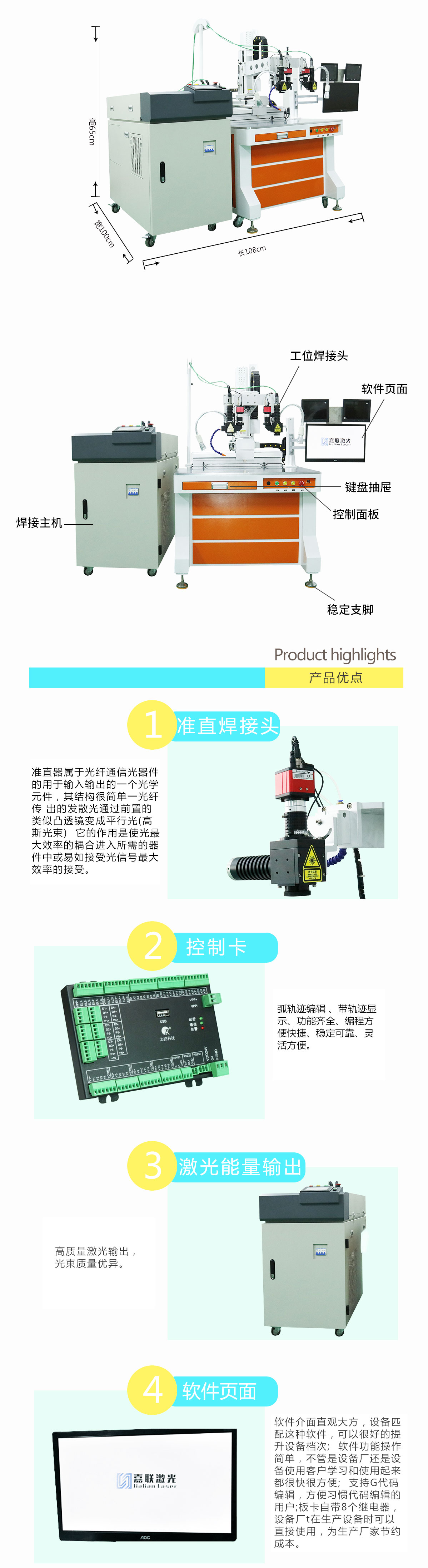 適用于各類金屬材料、對(duì)接焊、疊焊、密封焊,完成復(fù)雜的平面直線、圓弧及任意軌跡的焊接。并且可以 根據(jù)客戶產(chǎn)品的焊接工藝為客戶量身定制,采用四軸聯(lián)動(dòng)的全自動(dòng)可以把以前4-5個(gè)技術(shù)工人